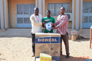 Un (01) jeune a reçu un congélateur de 150 litres et une balance pour une poissonnerie, tandis qu’un autre a été équipé d’un fer à chauffage et de trousseaux de tournevis pour la réparation de téléphones.