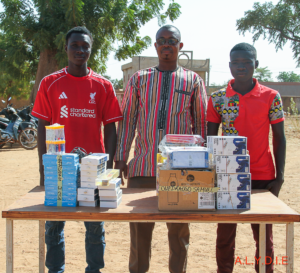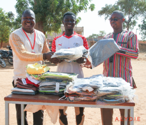 Enfin, trois (03) autres jeunes ont reçu des kits pour le commerce de savon, de vêtements ou d’accessoires de téléphonie comprenant des pousse-pousse, des ballots d’habits ou des stocks de chargeurs et d’incassables.